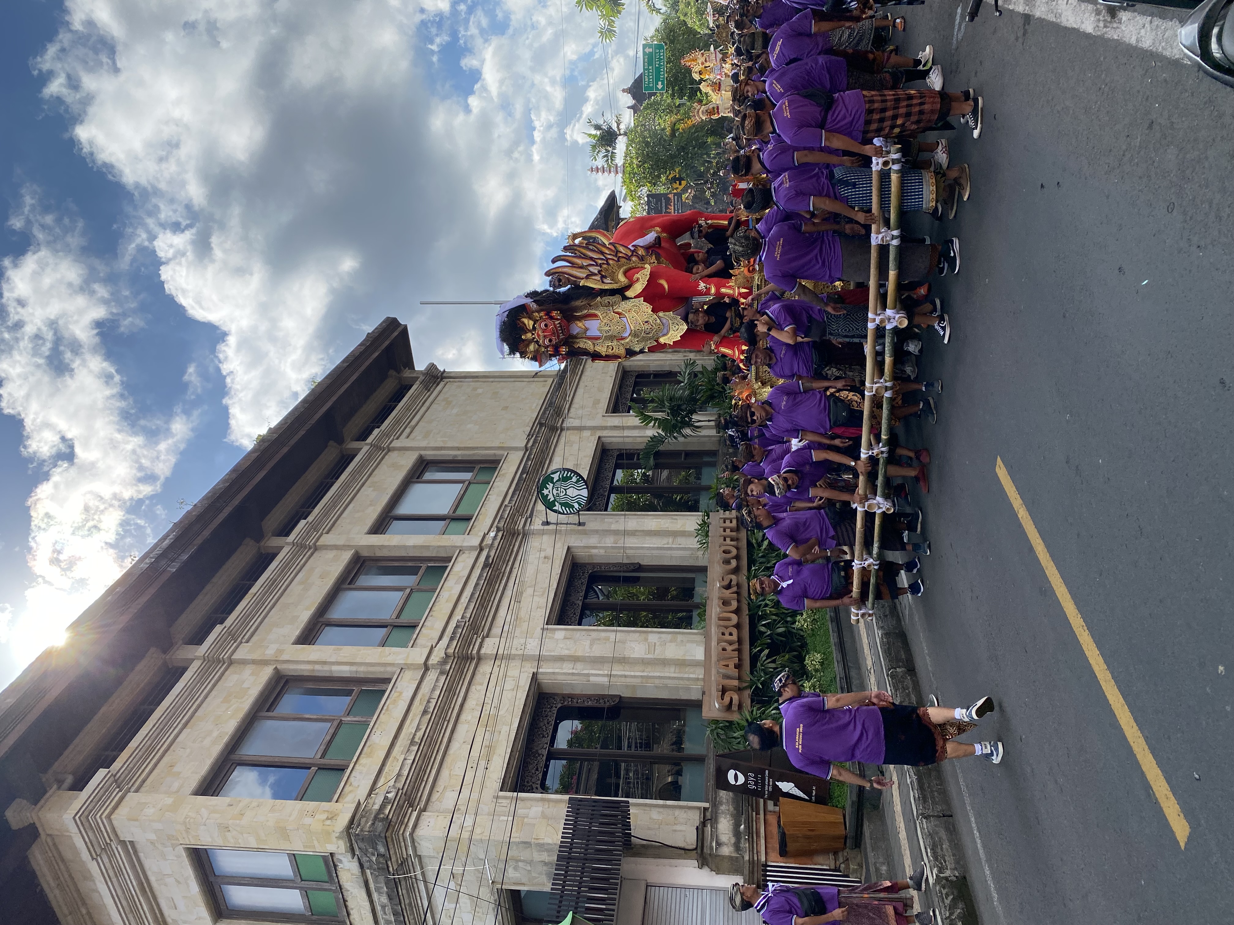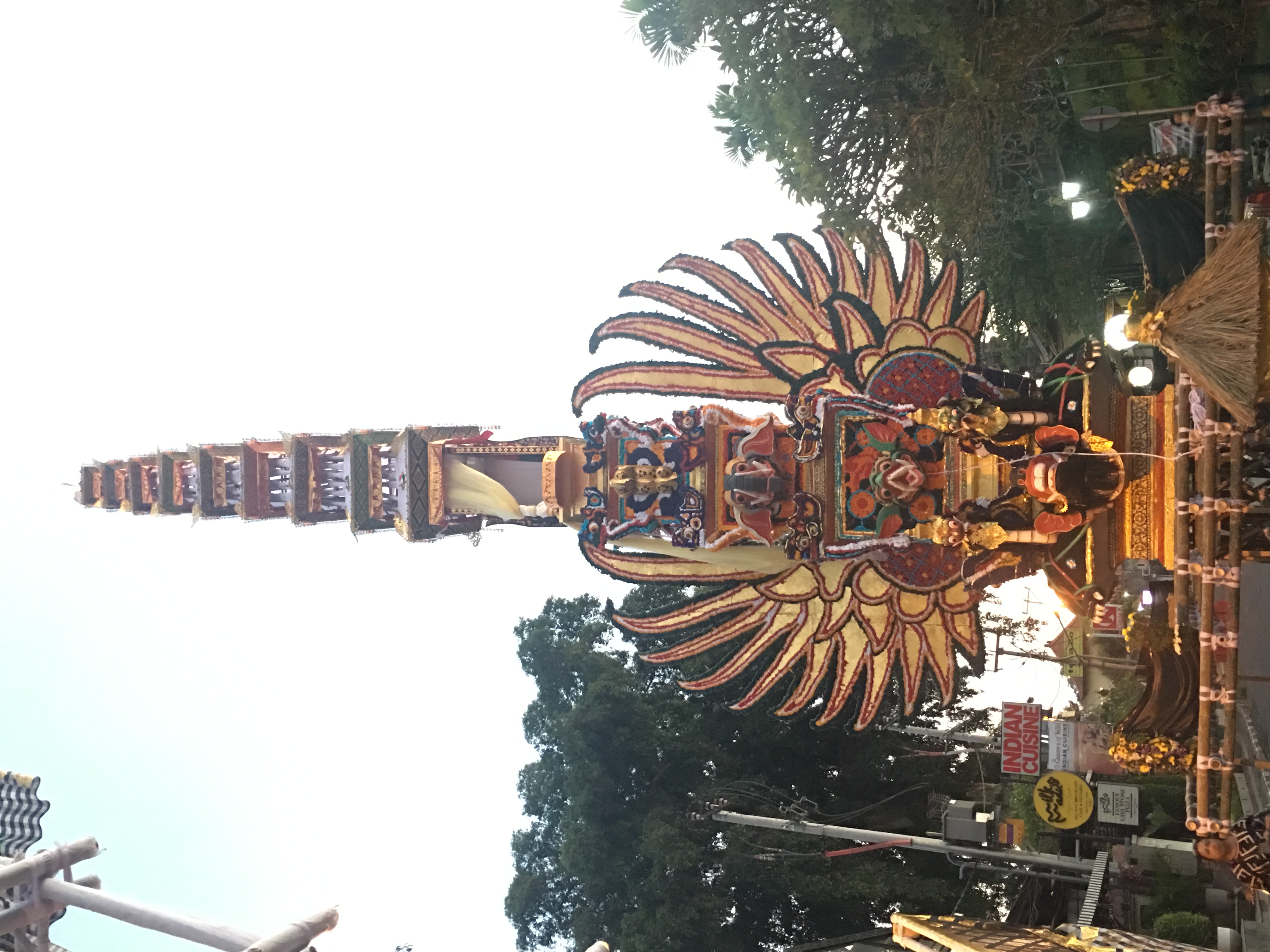 The parade will start at the Ubud soccer field and will head towards the main crossroad (the meeting place of the demons). Beforehand, there will be a Perang Api (fire war) to start the parade.